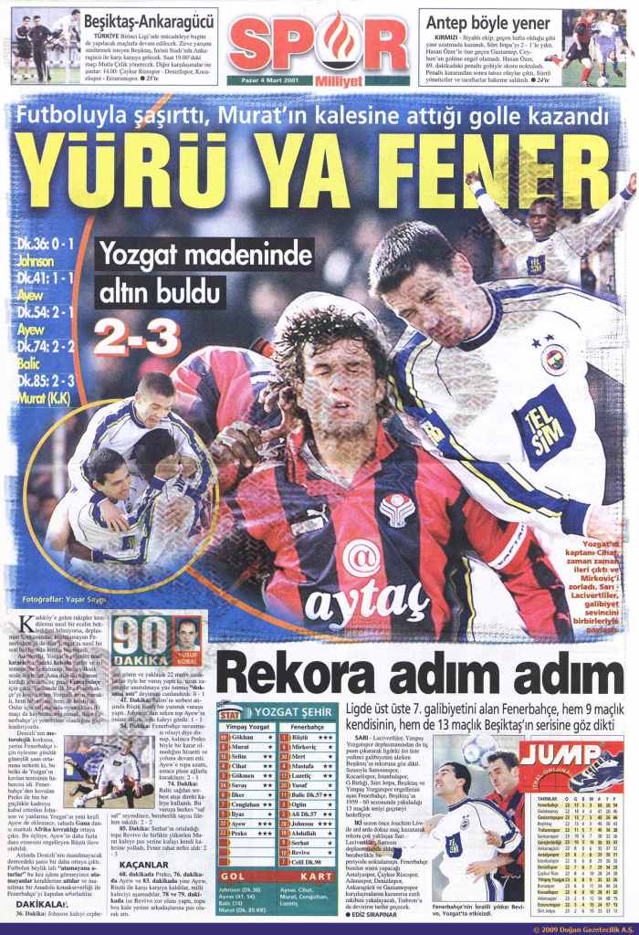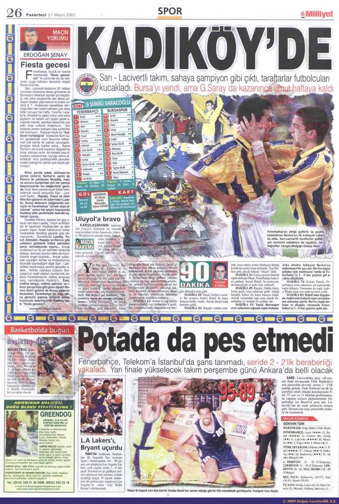 11 Ağustos 2000’de 4-0’lık Kocaelispor maçıyla başlayıp, 26 Mayıs 2001’de 3-1’lik Samsunspor maçıyla biten 2000-2001 Türkiye Ligi, Fenerbahçe’nin en uzun süre beklediği şampiyonluk yıllarından biri oldu. “Gazetelerde 2001 Şampiyonluğu” isimli bu albüm Milliyet gazetesi arşivinden alınan spor sayfalarını içeriyor.