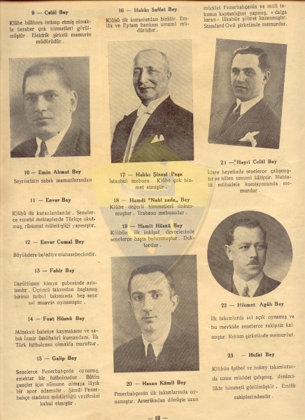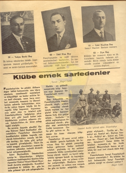 Sabık Ziraat Vekili. Mebus. Kulübe en çok hizmeti dokunanlardan biridir. İlk teşekkül devirlerinde ve en müşkül zamanlarında kulübe yardım etmiş. Fenerbahçe’nin bugünkü kuvvetli halinde fiilen en büyük amil olmuştur. Her Fenerbahçeli onu daima minnetle yad eder. Bunun içindir ki Sabri Bey daima kulübün umumi reisidir.