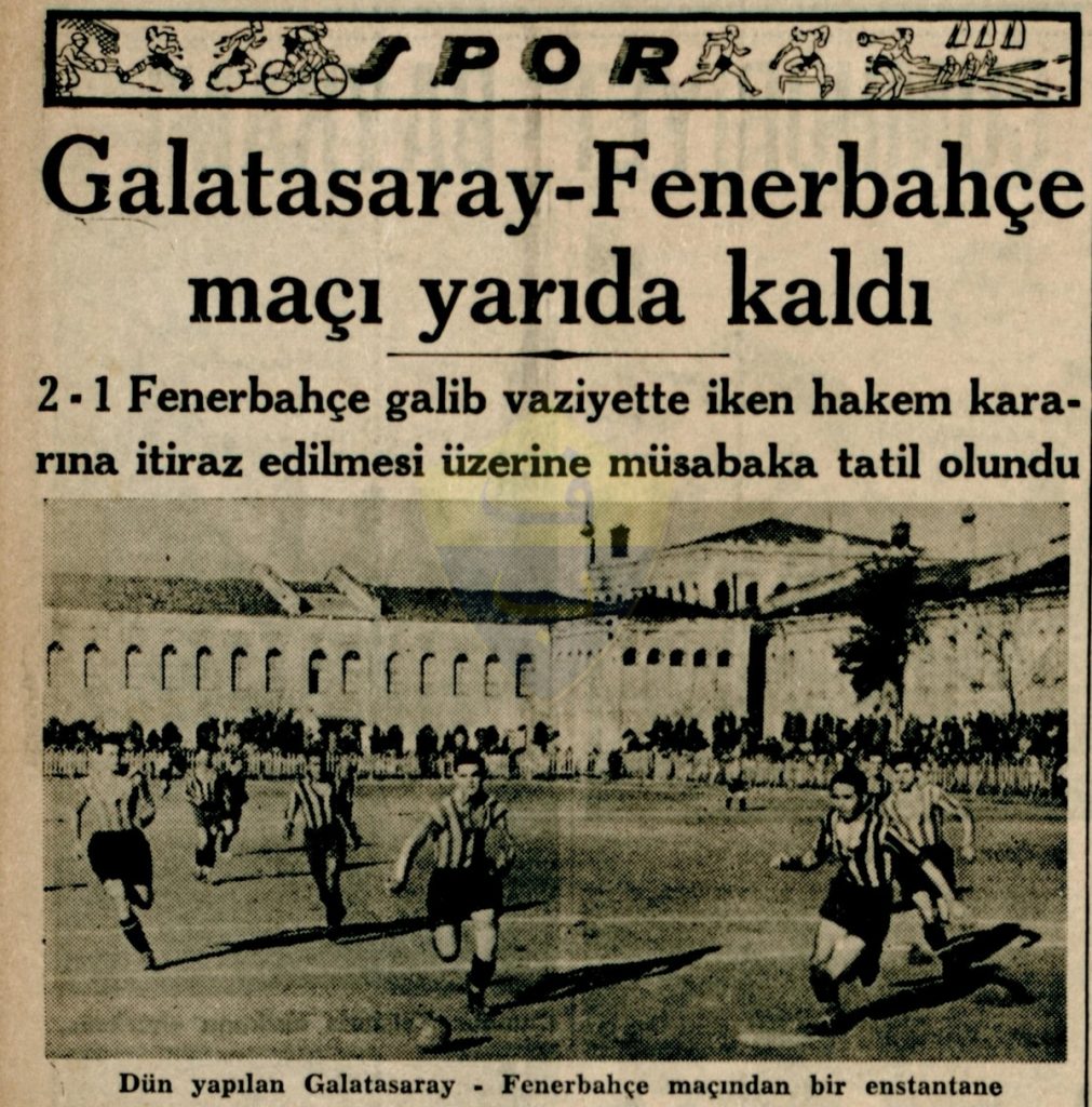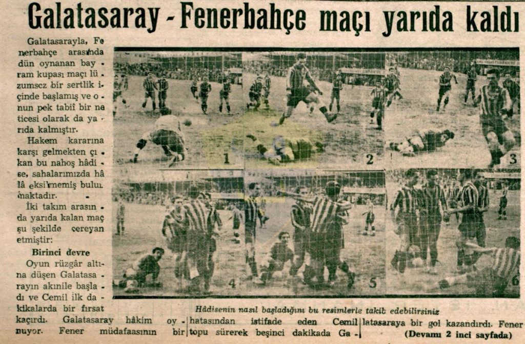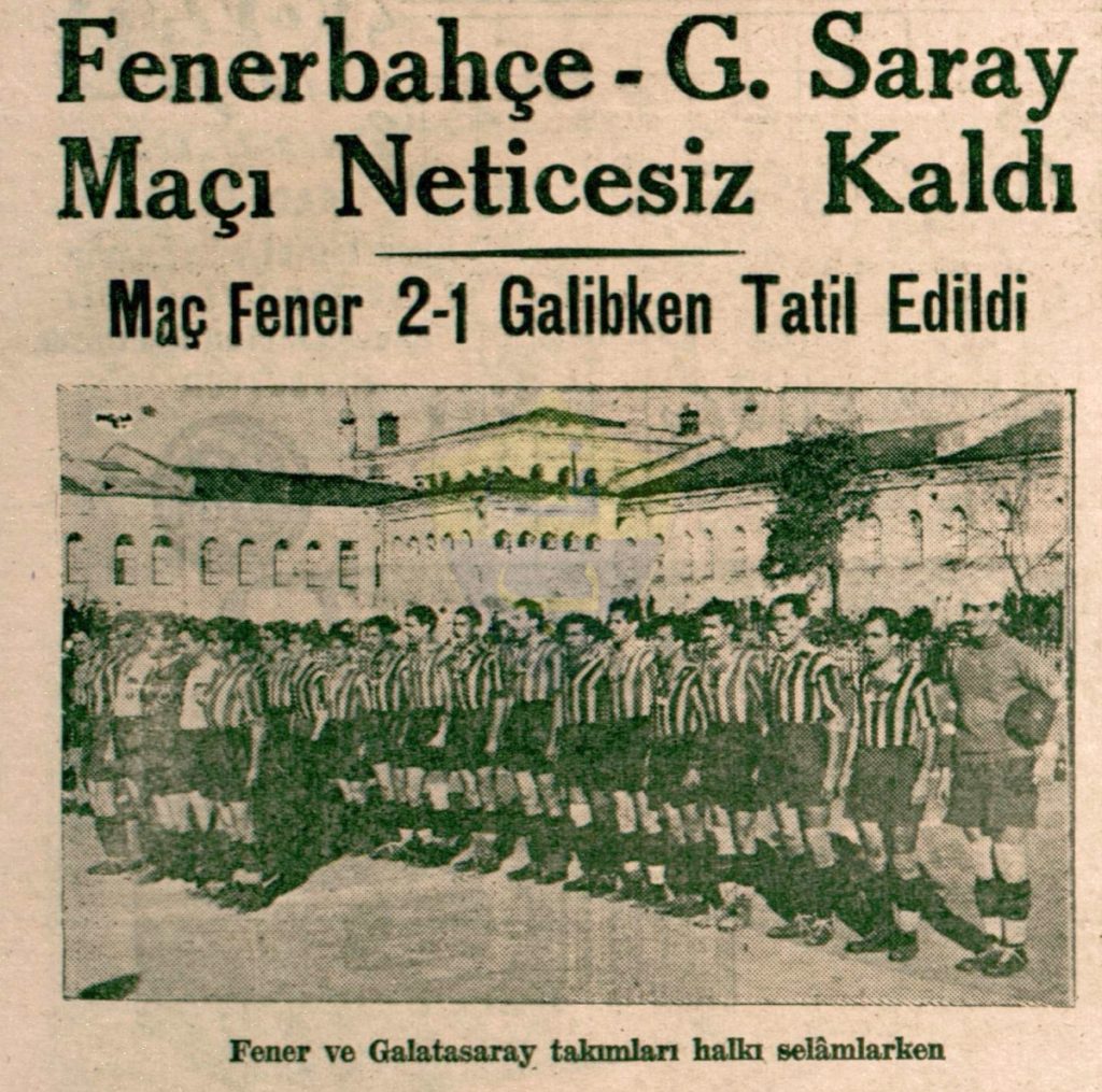 Dönem gazetelerinde yarım kalan Fenerbahçe-Galatasaray maçının haberleri