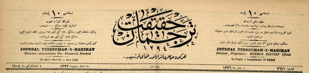 4 Mart 1908 tarihli Tercüman-ı Hakikat gazetesi