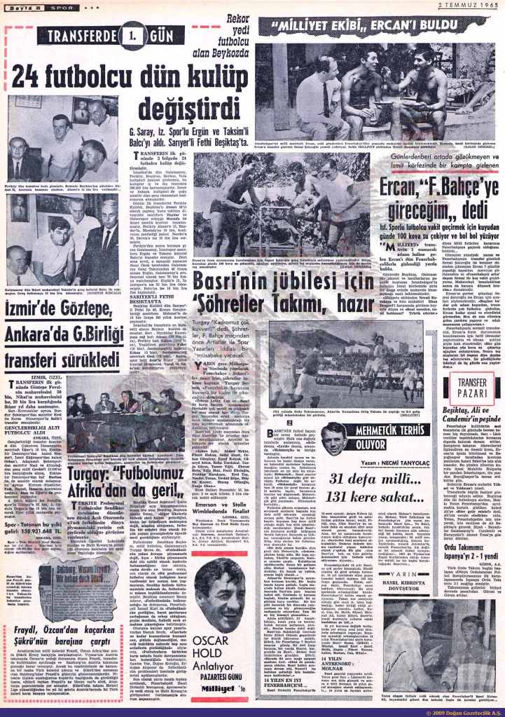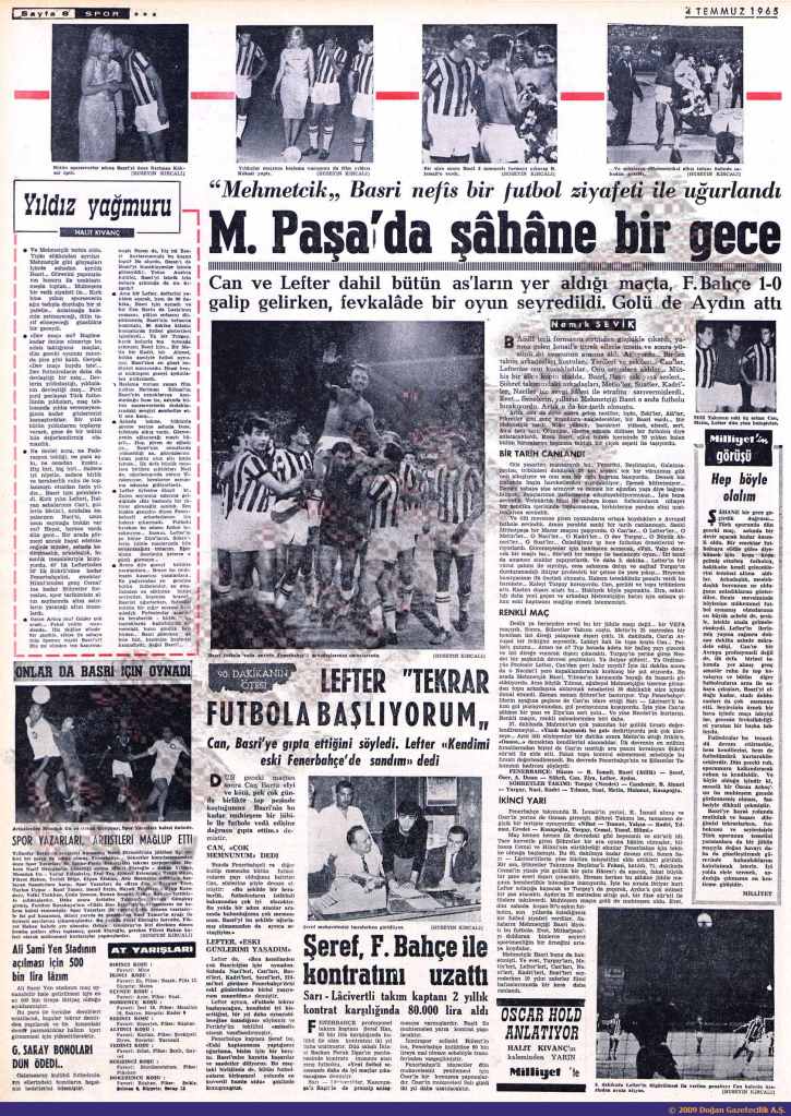 Basri’nin fedakarlığı üzerinde bizim Şükrü Gülesin geçenlerde bir küçük hatırasını anlattı. Şükrü, bir Fenerbahçe-Beykoz maçına gitmiş. İki deli karşı karşıya, bir yanda Nusret, karşısında da Basri. Birden ikisi birbirlerine girmişler. Şükrü: “Havada iki avcı uçağı çarpıştı sandım” dedi. “İkisi de paramparça oldular. Basri kalktı oyununa devam etti, Nusret’i ise kafatası çatladığı için hastaneye kaldırdılar!”