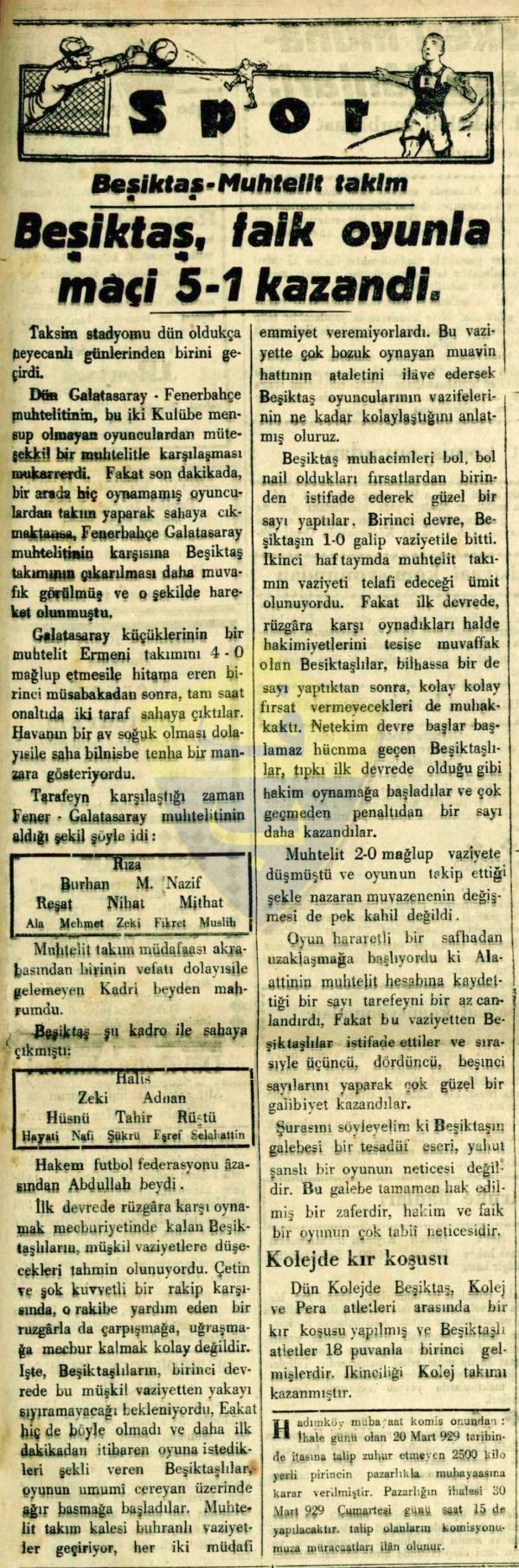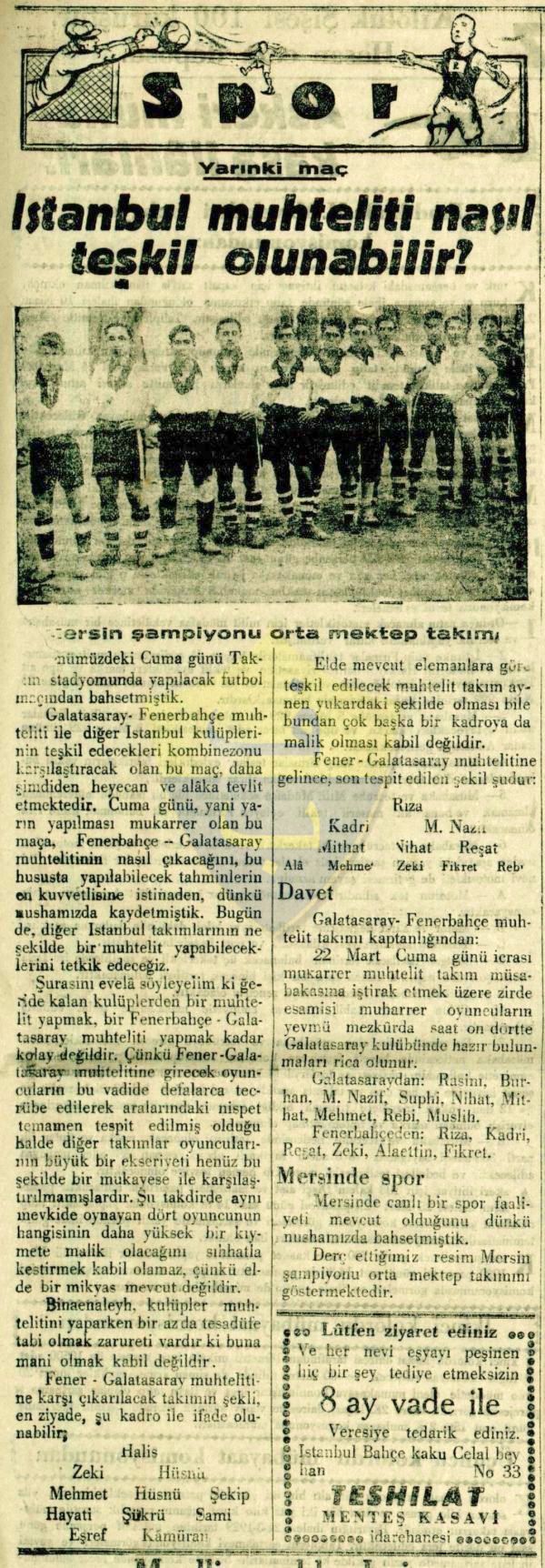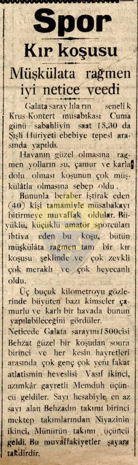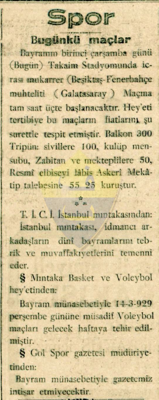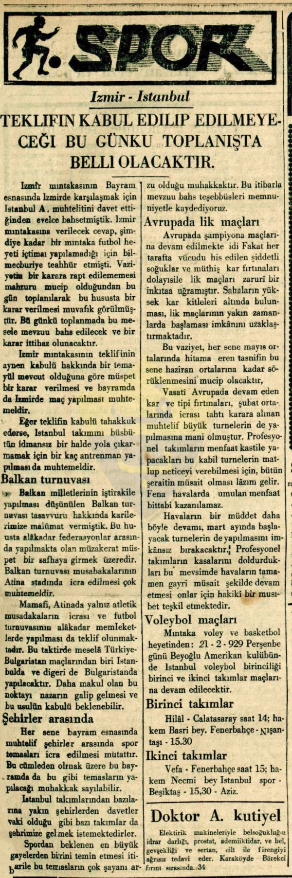 Voleybol Turnuvası Neticelendi. Mühendis Mektebi (Fenerbahçe) birinci, Kabataş ikinci, Galatasaray üçüncü oldular.
