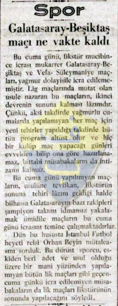 Galatasaray-Beşiktaş : Cuma Günü Lig Maçlarına Başlanacaktır