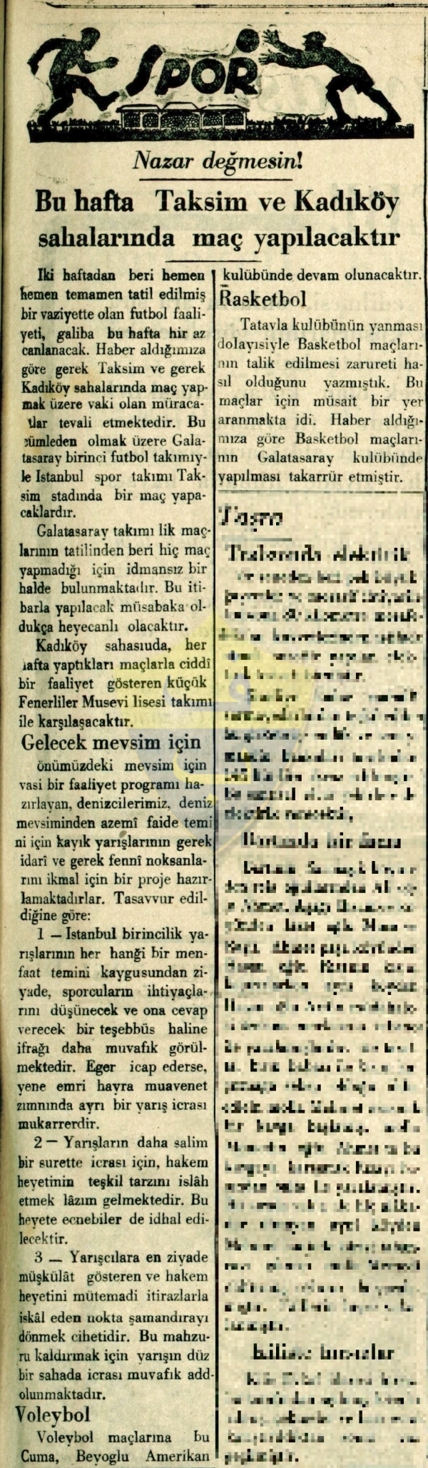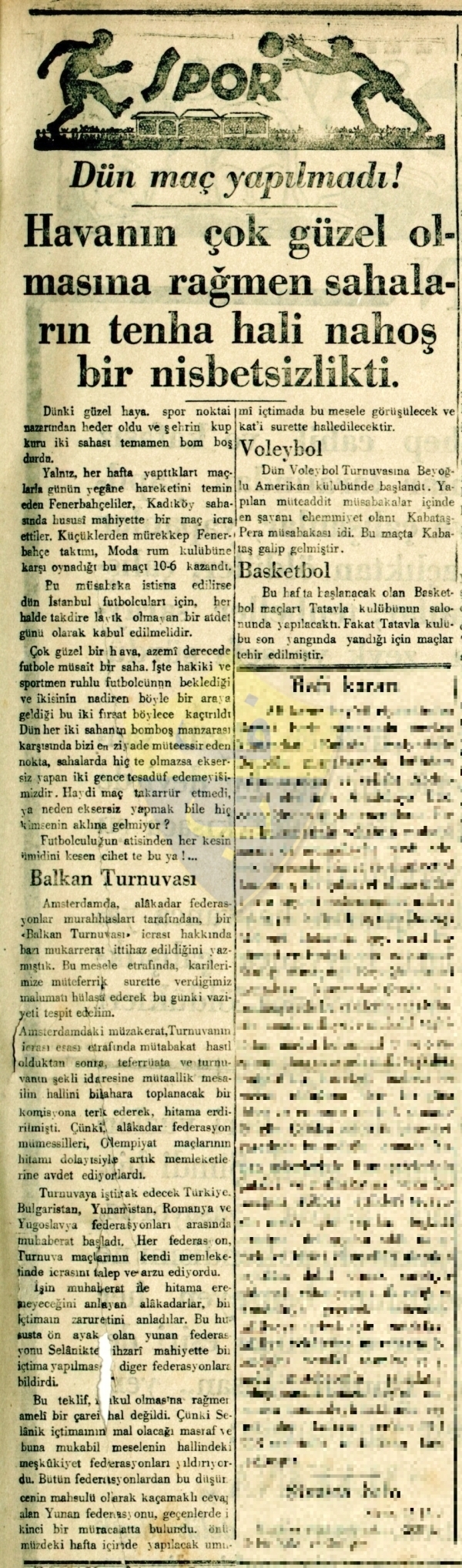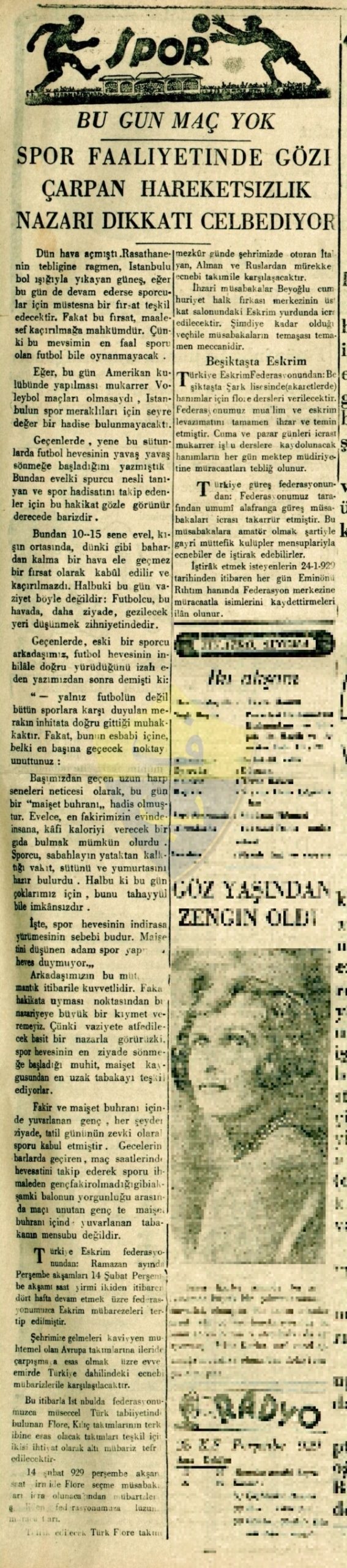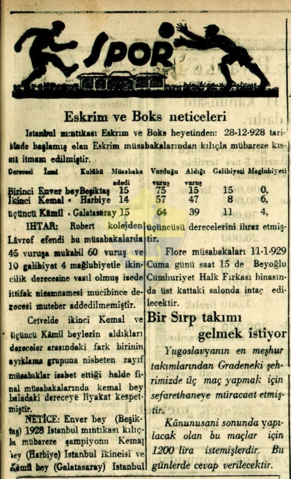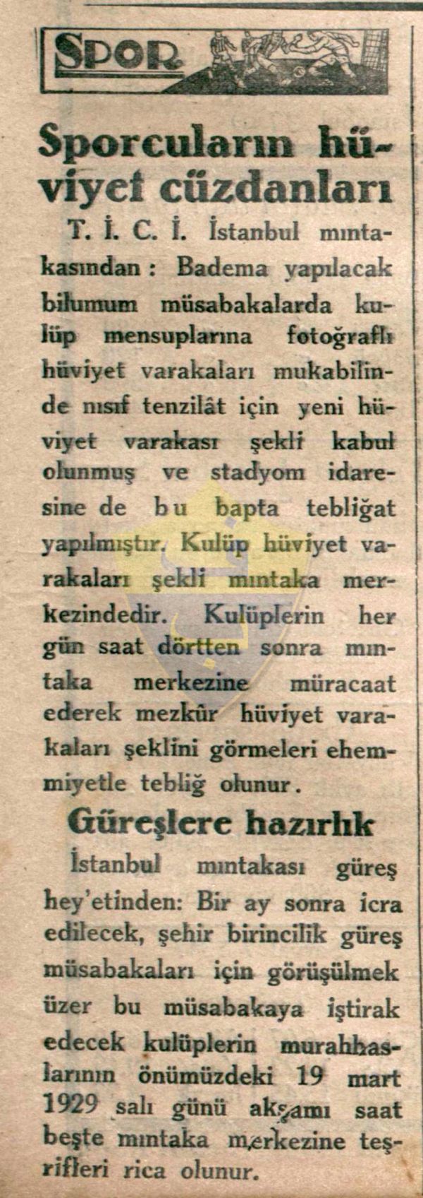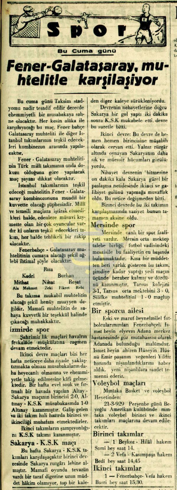 Aşağıda kronolojik bir biçimde, günlük gazete kupürlerini göreceksiniz. 1 Ocak 1929 tarihinden başlayarak, elimizden geldiğince hızlı bir biçimde ilerlemeyi planlıyoruz. Amacımız bir “Türk Spor Günlüğü” meydana getirmek… Basit aramalarla tuttuğunuz takımların haberlerine ulaşabileceğiniz ve ilgilendiğiniz branşların bilgilerini bulabileceğiniz bir Türk Spor Günlüğü…