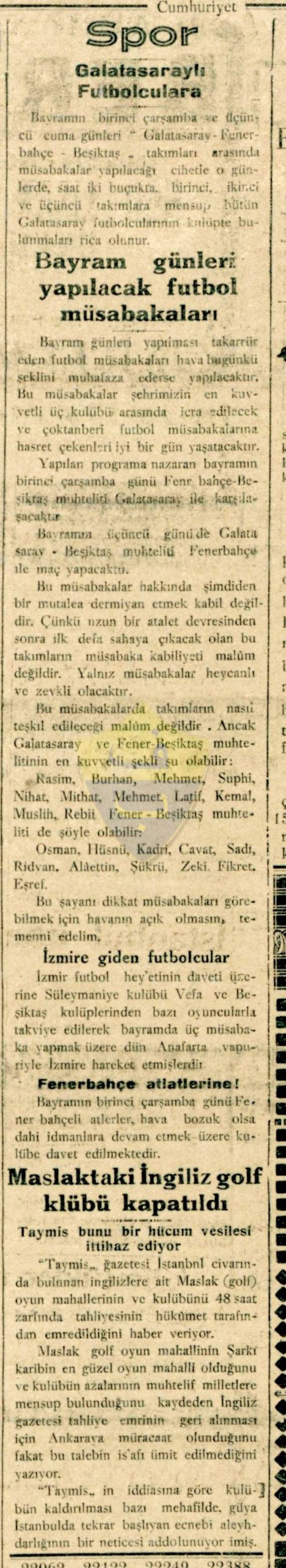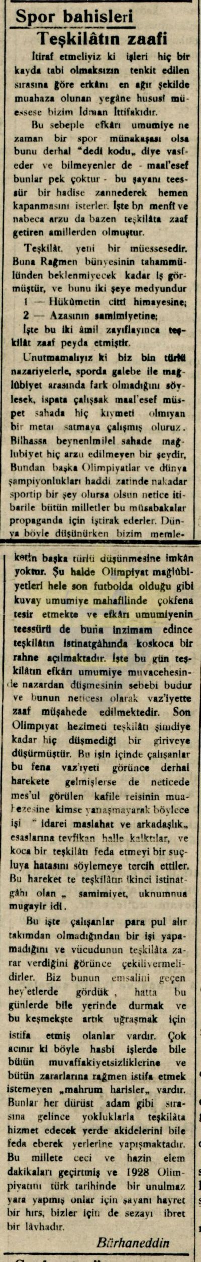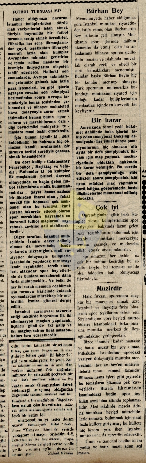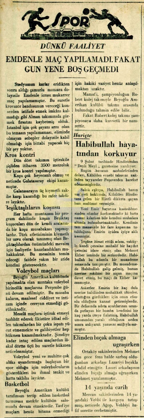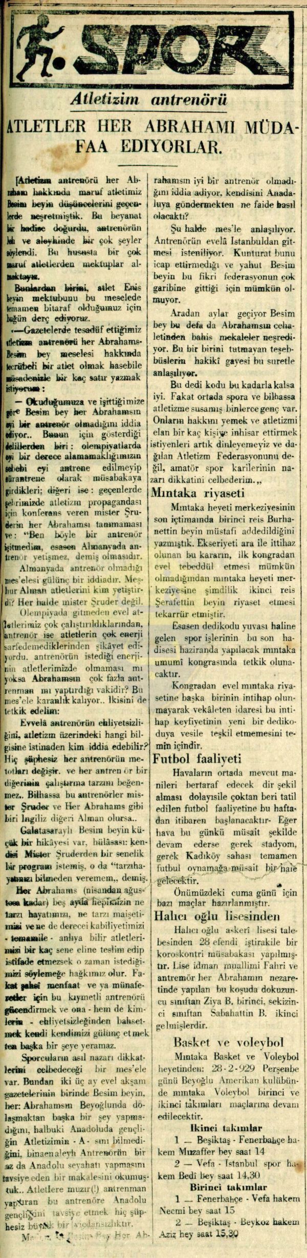 Aşağıda kronolojik bir biçimde, günlük gazete kupürlerini göreceksiniz. 1 Ocak 1929 tarihinden başlayarak, elimizden geldiğince hızlı bir biçimde ilerlemeyi planlıyoruz. Amacımız bir “Türk Spor Günlüğü” meydana getirmek… Basit aramalarla tuttuğunuz takımların haberlerine ulaşabileceğiniz ve ilgilendiğiniz branşların bilgilerini bulabileceğiniz bir Türk Spor Günlüğü…