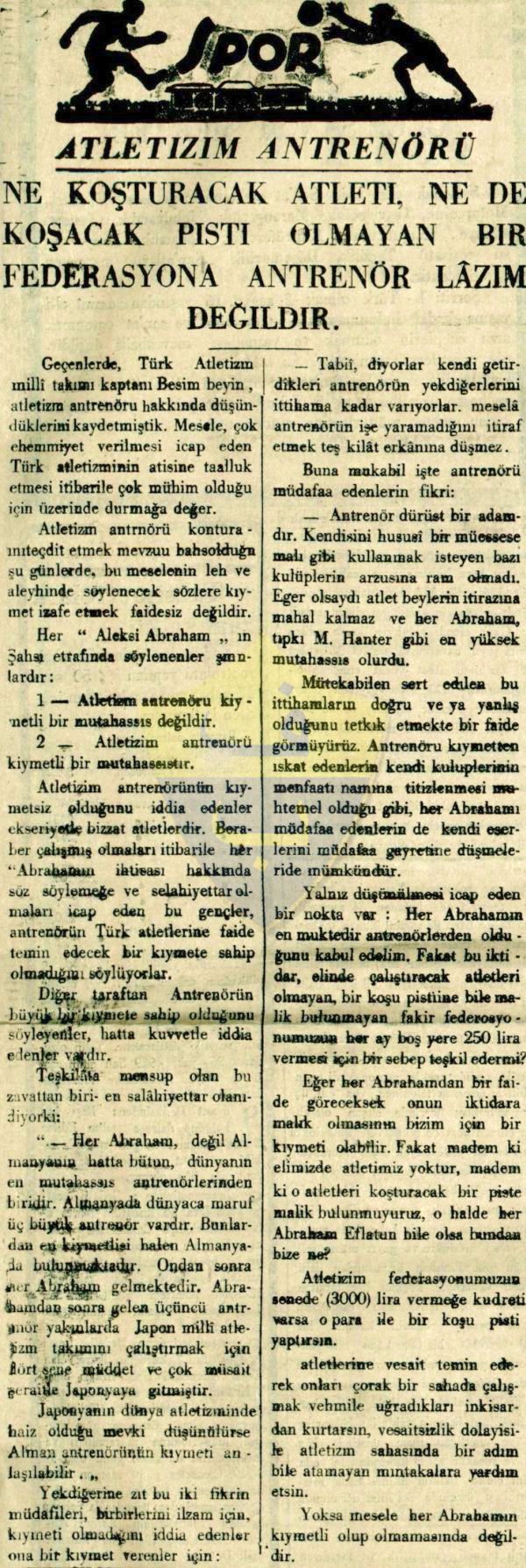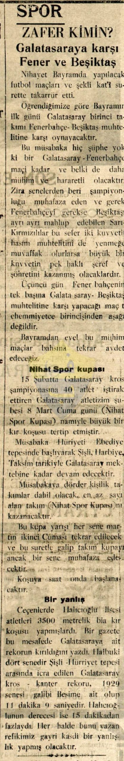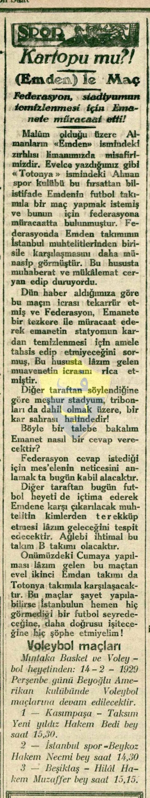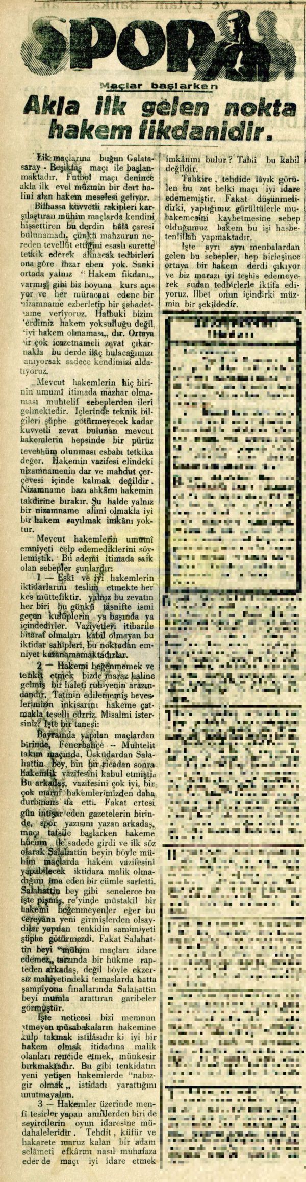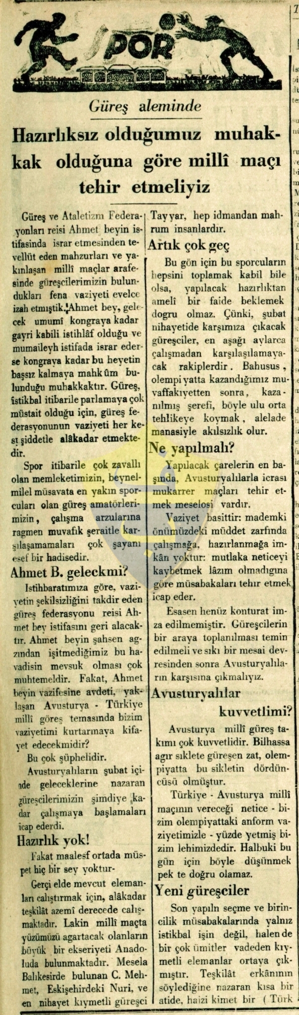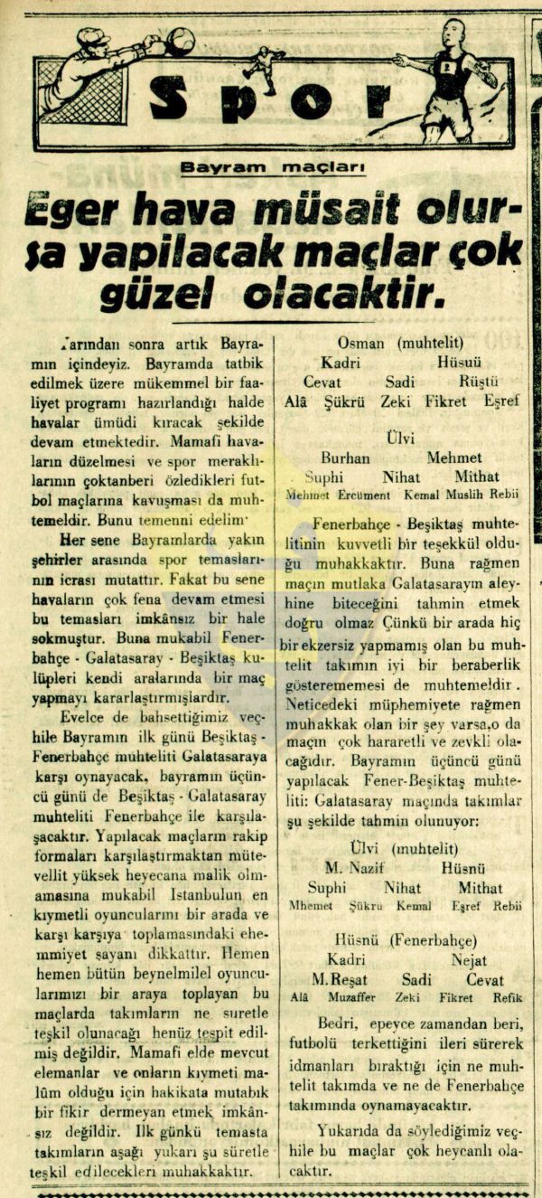 Aşağıda kronolojik bir biçimde, günlük gazete kupürlerini göreceksiniz. 1 Ocak 1929 tarihinden başlayarak, elimizden geldiğince hızlı bir biçimde ilerlemeyi planlıyoruz. Amacımız bir “Türk Spor Günlüğü” meydana getirmek… Basit aramalarla tuttuğunuz takımların haberlerine ulaşabileceğiniz ve ilgilendiğiniz branşların bilgilerini bulabileceğiniz bir Türk Spor Günlüğü…