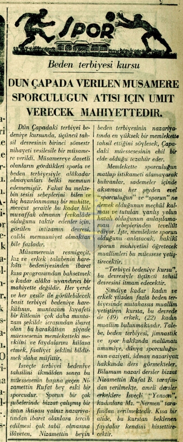 Beden Terbiyesi Mektebinde Dün Mükemmel Bir Müsamere Verildi