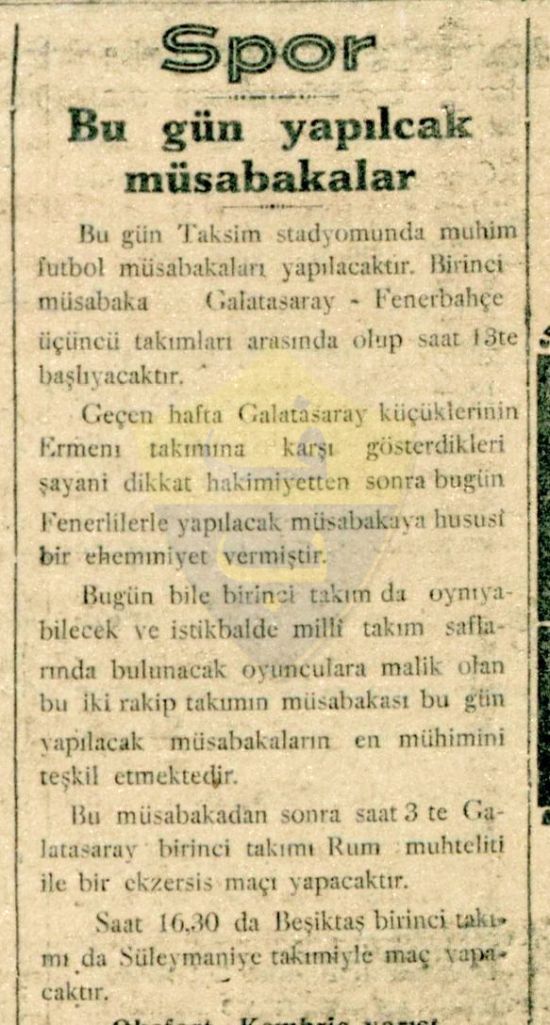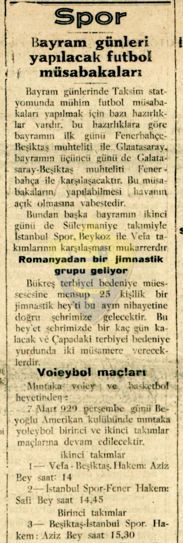 Futbol Maçları : Taksim’de Üç Mühim Müsabaka Yapılacaktır