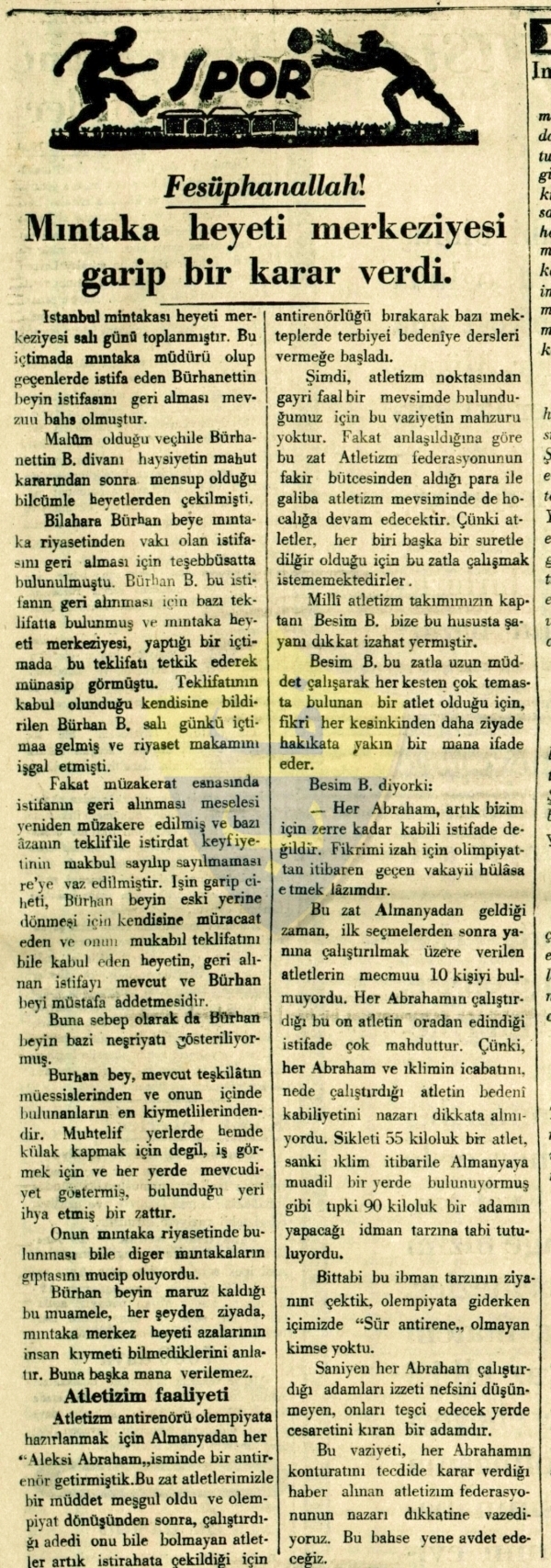 Spordaki İnhitat Daha Ziyade Ruhî Amillerden İleri Geliyor