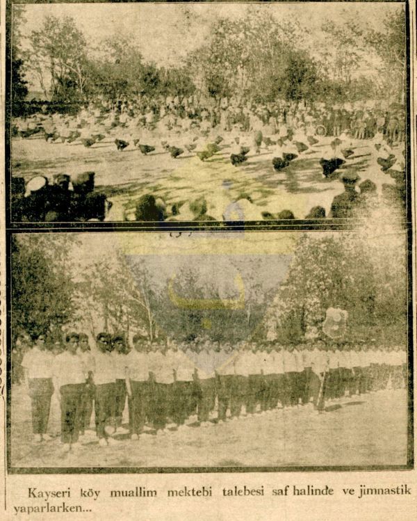 Kayseri Köy Muallim Mektebi Talebesi Saf Halinde ve Jimnastik Yaparlarken