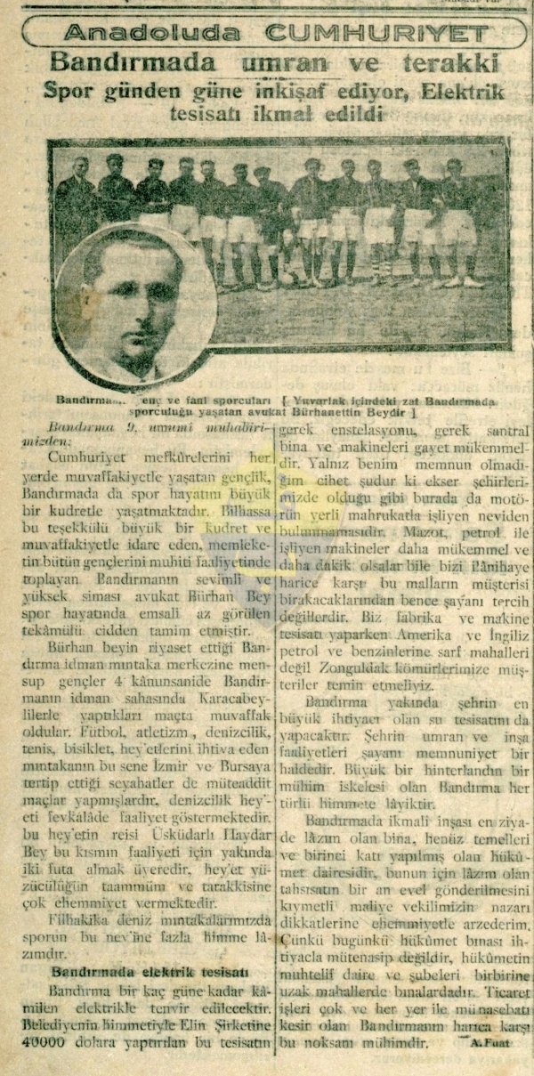 Bandırma’da Umran ve Terakki. Spor Günden Güne İnkişaf Ediyor